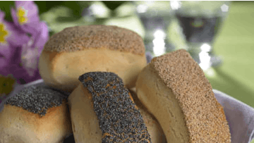 Smelt smørret. Tilsæt vand og mælk og smuldr gæren i. Tilsæt salt, sukker, æg og det meste af hvedemelet. Ælt til en smidig dej med mere mel. Lad dejen hæve lunt tildækket til dobbelt størrelse 40-50 min. Læg dejen på et meldrysset bord. Del den i 4 stykker og rul hvert stykke ud på langs. Skær hvert stykke i 6 snitter. Pensl med æg og dyp i birkes. Læg stykkerne på plade med bagepapir og lad dem hæve lunt ca. 30 min. Bages på midterrillen ved 250° ca. 10 min.