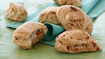 Rør gær og vand glat. Hæld melet i sammen med abrikoser, nødder og salt. Ælt den våde dej sammen.