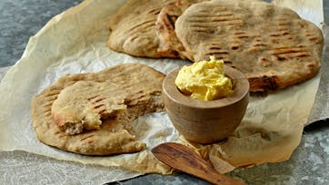 Skræl og riv kartoflerne groft. Vend dem grundigt rundt med salt. Lad dem stå koldt i 2 dage. Tilsæt kærnemælk og lad det trække yderligere en dag. Smag, om det er for salt, hvis det er det, må det sies, og der skal så kun bruges lidt af lagen. Bland med vand og gær og ælt med så meget mel, at dejen kan æltes på bordet, ælt den i 10 min. Lad den hæve 1 time. Del dejen i 4, rul dem ud til flade brød og lad dem efterhæve 20 min. Bag dem ved 225º i 10 min. Steg dem færdige på en grillpande penslet med smør. Servér med hjemmerørt smør