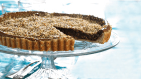 Chokolade-valnødde tærte med frugter