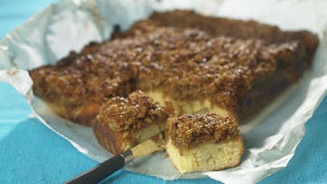 Pisk æg og sukker luftigt. Tilsæt mel blandet med bagepulver og vaniljesukker. Lun mælk og smør og vend det i dejen. Hæld dejen i en lille smurt bradepande 20 x 30 cm og bag kagen midt i ovnen ved 200° i 20 min., mens glasuren tilberedes. Kom smør, kokosmel, farin og mælk i en gryde og bring det i kog under omrøring. Fordel glasuren på den forbagte kage og bag den færdig ved 225° i 10 min.