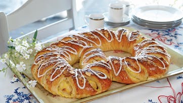Tip: Hvis det er svært at håndtere den lange dejpølse, kan du dele den i to og lægge dem helt tæt sammen på pladen.