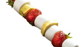 Fordel friske jordbær, bananskiver med skræl på og skumfiduser på dine grillspyd. Grill dem, til de er brune og sprøde.