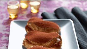 Smelt smør, vand og sukker i en gryde og pisk melet i. Lad dejen koge sammen, mens der røres, til den slipper gryden. Tag dejen af varmen og lad den køle lidt. Rør æggene i et ad gangen og rør, til dejen bliver glat og skinnende. Kom dejen i en sprøjtepose og sprøjt den ud i aflange stænger på 8 x 4 cm på en plade med bagepapir. Bag kagerne ved 220° i 15 min., dæmp varmen til 200° og bag i yderligere 10 min. Pisk æggeblommerne lyse med sukker, kornene fra vaniljestangen og maizena og tilsæt mælken. Varm langsomt blandingen op under omrøring og lad cremen koge igennem, mens der piskes. Stil cremen til afkøling, pisk fløden til skum og vend den i den kolde creme. Kom cremen i en sprøjtepose, skær en revne i toppen af kagerne og fyld dem med cremen. Rul marcipanen ud i 2 mm tykkelse og udstik 8 cm cirkler. Kom cirklerne over cremen og drys med kakao.