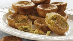 (12 stk.)250 g hvedemel2 tsk. bagepulver100 g sukker2 spsk. birkesReven skal af 4 usprøjtede klementiner og saften af de 3100 g smeltet smør2 æg2 dl