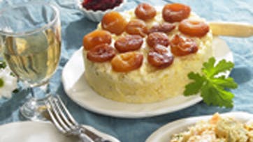 Vend bunden ud på et fad og læg abrikoserne på. Server rabarberne til.