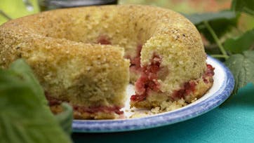 Rør smør og sukker godt og rør æggene i et ad gangen. Bland mel, bagepulver og vanilje og vend det i dejen skiftevis med cremefraiche og citron. Smør en randform på 11/2 l og drys den med sesamfrø og rasp. Kom halvdelen af dejen i formen, fordel ribsene og kom resten af dejen over. Bag kagen på nederste rille ved 175° 50-60 min.