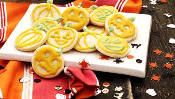 Smuldr smørret i melet og tilsæt sukker og vaniljesukker. Rør ægget i og saml dejen med mælken. Rul dejen i 3 mm tykkelse, udstik småkager med en 5-6 cm rund udstikker og læg dem på en bageplade med bagepapir. Bag kagerne midt i en forvarmet ovn ved 180° i 18 min. og lad dem afkøle på bagepladen. Rør flormelissen med citronsaft og frugtfarve og dekorer de kolde kager.