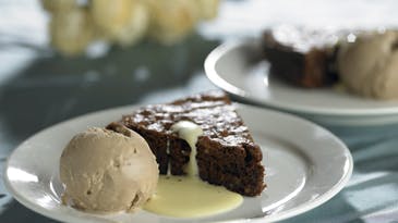 250 g svesker3 kugler syltet ingefær2 spsk. ingefærlage½ dl appelsinsaft200 g smør200 g sukker3 æg200 g mel1 tsk. bagepulverHak sveskerne groft og