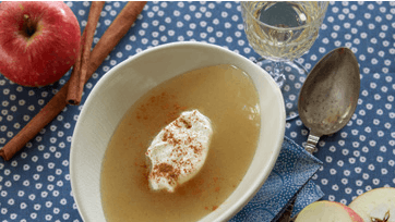 Denne suppe med kanel og vanilje smager skønt - servér æblesuppen lun med flødeskum