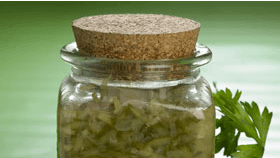 Riv agurkerne groft og pres vandet af dem. Pil og hak løg og hvidløg og svits det sammen med chili i olie ved jævn varme, uden at det tager farve. Tilsæt vineddike, sukker og salt og varm det op. Tilsæt agurk og bland det godt. Lad det simre 10 min. under låg. Hæld relishen i et skoldet glas og luk det.