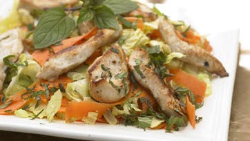Varm en stegepande eller wok op. Steg kyllingestrimlerne med citrongræs over middelvarme ca. 5 min., til kyllingen er gennemstegt. Bland det i salaten og server.