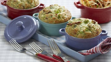 Smør 3 ovnfaste portionsforme og drys dem med rasp. Fordel gratindejen i formene og bag dem i 30 min. ved 200°.