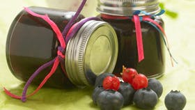 Rib ribsene og skyl alle bærrene godt. Kog bærrene op med sukker, kanel og saften fra limefrugten og lad det småkoge i 10 min. under låg.