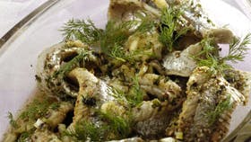 Træk skindet af sildene. Rør lagen sammen og lad sildene ligge i den natten over i køleskab. Tag sildene op, lad dem dryppe godt af og dup dem tørre. Rør alle ingredienserne til marineringen sammen. Læg sildene lagvis med blandingen i en stor krukke eller højt glas. Lad sildene trække nogle dage i køleskab, de kan holde sig en uges tid.