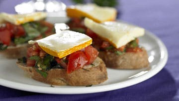 Har du lyst til lidt let og lækkert? Så skulle du prøve denne bruschetta med port salut - se opskriften lige herunder.
