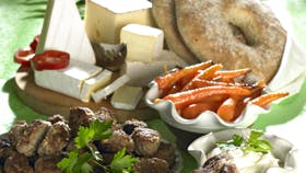 Ud over den lækre hjemmelavede mad er der også gode danske oste på buffeten. Danbo fra Tistrup er fast og god (ofte på tilbud) og findes både mellemlagret og lagret. Fra Høng er der Klosterkrone, som er en blå/hvidskimmelost og Gyldenrød, som er en mild rød skimmelost, og endelig Brie fra Castello. Alle ostene findes i velassorterede supermarkeder. Husk at tage dem ud af køleskabet et par timer før.