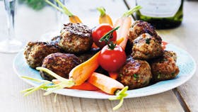 Hak forårsløgene fint. Flæk chilien, skrab kernerne ud og hak den fint. Rør kødet grundigt sammen med salt, peber, havregryn, æg, mælk, forårsløg og chili. Form 20, små frikadeller og steg dem i olien på en pande, til de er gyldenbrune.