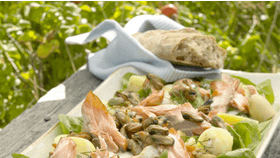 Kartoffelsalat med rygeostsauce