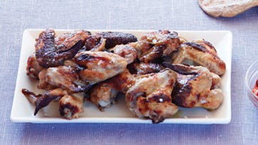 Snit ridser i skindet på kyllingevingerne med en skarp kniv. Bland fintrevet hvidløg med resten af ingredienserne i en skål og vend vingerne rundt heri. Stil i køleskabet natten over. Steg vingerne i ovnen ved 180° i 45-60 min. eller grill dem ca. 30 min. Husk at vende dem mange gange undervejs. Hvis du steger dem hjemmefra, skal de pakkes i alufolie, så de holder sig lune i et stykke tid. Lun dem evt. på en igangværende grill.