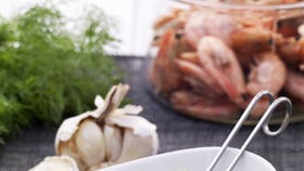 Blend æggeblommerne med sennep, eddike, dild, hvidløg og salt til en glat blanding. Tilsæt olien lidt ad gangen, mens der blendes, til saucen bliver tyk og cremet. Server saucen som dip eller dressing til fisk og skaldyr eller brug den som "smør" under en laksemad.