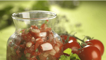 Dejlig krydret tomatsalsa med modne sommertomater og chili. Spis salsaen som tilbehør til lam, kylling, grove pølser og krydrede farsretter. Den kan holde sig 3-4 dage i køleskab.