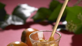 3-4 sharonfrugter2½ dl vandSaft af ½ citron125 g sukkerEvt. 1 tsk. kanelSkær sharonfrugterne i små stykker. Kom frugten i en gryde med vand og