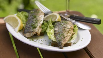 Del fileterne på langs, hvis de er store. Vend dem i mel med salt og peber. Steg dem på pande i smør 2-3 min. på hver side. Læg dem lune på groft brød med salatblade og dryp balsamico over. Drys med rigelig persille og spis dem lune.