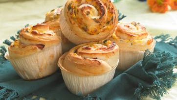 Fyld: Bland kvark, ost, purløg og sennep. Smør det på dejen i et tyndt lag og læg skinkeskiverne ovenpå. Rul dejen sammen på langs, som en roulade, og skær den i 8-10 stykker. Læg sneglene i små forme. Pensl med æg. Bag sneglene 12-14 min. på midterrillen ved 225° - eller frys snegledejen ned. Dagen før turen lægges film over sneglene, og de stilles i køleskabet natten over. Pensl med æg og bag sneglene på midterrillen ved 225° 12-14 min.