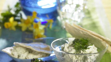 Bland ost, nødder og urter. Smag til med olivenolie, hvidløg, salt og peber. Skær tortillabrød i trekanter og rist dem. Spis dem til dippen eller læg dem sammen som sandwich.