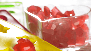 Udblød husblassen i koldt vand. Bland sukker, kartoffelmel, citronsyre og saft i gryden. Varm blandingen op under omrøring, til sukkeret er smeltet, tag gryden af varmen og tilsæt frugtfaven. Lad husblassen dryppe godt af og rør den i den varme sukkermasse. Pensl i 2-3 isterningebakker el. en bradepande på 20 x 30 cm med olien. Hæld sukkermassen i isterningebakker el. bradepande og stil dem på køl, til vingummien er størknet. Vend vingummierne ud af bakker el. bradepande og skær dem eventuelt i passende stykker.