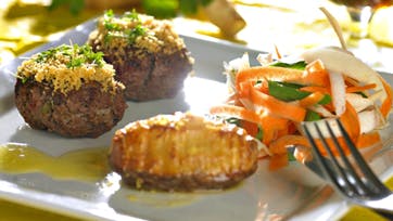 Hakkebøf med pesto og gratinerede kartofler