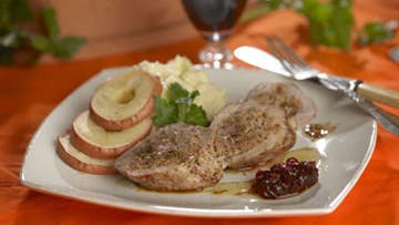 Tilbehør: 1½ selleriknold kogt til mos og smagt til med 50 g smør, hakkede hasselnødder og hakket persille, salt og peber