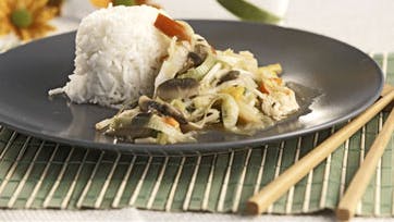 Svits kyllingekød og hvidløg i olien ved høj varme, til det tager farve. Tag kødet og bland det med oystersaucen. Svits peberfrugter, porrer, hvidkål og champignoner ved høj varme, til de begynder at tage farve. Tilsæt hønsebouillonen og lad det koge op. Rør majsstivelsen ud med 2 spsk. vand, hæld i og lad koge i 2 min. Tilsæt kyllingekødet sammen med bønnespirerne og varm det godt igennem. Smag til med salt og peber og server med ris.