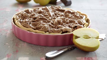 Prøv f.eks. en skøn tærte med pærer - der er i sæson netop nu - med sprødt mandellåg...