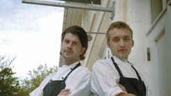 Her driver Kim Møller- Kjær (til venstre) og Michael Pedersen restaurant Glashuset, som for kort tid siden er blevet udvidet med en ny brasseri-afdeling. Der er selvfølgelig fisk og skaldyr på menuen herude ved havet foruden den dejlige sommerbuk. De to kokke bruger løs af naturens vilde blomster og urter, som både pynter og smager.