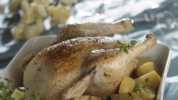 Grydestegt kylling med kartofler og bacon