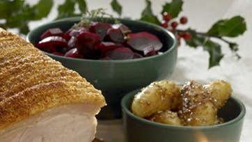 Stegt svinekam ved lav temperatur og kartofler med sesam