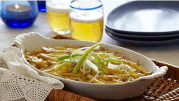 Pil løgene og skær dem i skiver. Steg løgene næsten møre ved jævn varme i 15 g smør og køl dem af. Hæld væden fra ansjoserne og gem den. Skræl kartoflerne og skær dem i tynde strimler. Læg kartofler, løg og ansjoser lagvis i et ildfast fad, øverste lag skal være kartofler. Hæld 3 spsk. ansjosvæde over og fordel resten af smørret. Sæt fadet i ovnen ved 200° i 10 min. Hæld fløden over kartoflerne og sæt fadet tilbage i ovnen ca. 40 min, til kartoflerne er møre, og fristelsen er gyldenbrun.