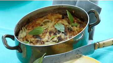 Tænd ovnen på 180º. Sæt en gryde over med rigeligt vand og lidt salt. Skær hvidkålen i både og blanchér dem i kogende vand i ca. 3 min., tag dem straks af varmen og overhæld dem med koldt vand. Skræl kartoflerne og riv dem groft. Bland kartoflerne med kålen. Pisk æggene med hytteost, revet muskatnød, hakket basilikum og 1 tsk. salt. Anret hvidkål og kartofler i et ovnfast fad og hæld æggemassen over. Pynt med hele basilikumblade og friskkværnet peber. Riv osten groft og drys den over. Sæt fadet i en 180º varm ovn i 15-20 min. Gratinen er færdig, når osten har en let gylden farve.