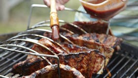 Tænd grillen i god tid og læg først ribbenene på 30 min. efter, at kullene er klar, så grillen er mindre varm. Det er nemmere at undgå for høj varme, hvis du bruger spareribsholder på grillen.