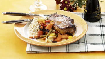 Stegte koteletter på ben i asiatisk rødvinssauce