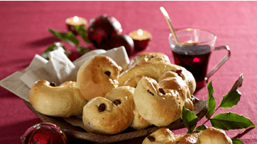 Opløs gæren i mælken. Tilsæt æg, sukker, salt, smør og safran. Kom halvdelen af hvedemelet i og rør grundigt. Forsæt med melet, til dejen er smidig. Ælt i mindst 10 min. Lad hæve tildækket til dobbelt størrelse. Slå ned og form til S'er - eller andre figurer. Lad dem efterhæve i 1 time. Bages ved 210° i 12-15 min. Spises lune eller nybagte. Hvis du ikke skal spise dem straks, skal de fryses, da her er tale om en fed gærdej, som hurtigt bliver smuldret, hvis den opbevares ved stue- eller køletemperatur.