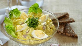 Ingredienser til karrysilde-salat