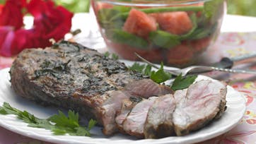 Marineret banket svinenakkekam med bønne-vandmelonsalat