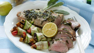 Gnid mørbraden med en blanding af hakkede krydderurter, citron, salt og peber og lidt olie. Sæt den i ovnen ved 200º i 15 min. Tjek om den har fået nok eller giv den evt. lidt mere. Skær den i skrå skiver ved servering.