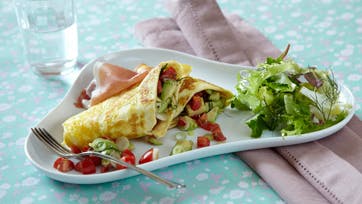 Tip: Fyldet kan varieres - udskift tomat og skinke med laks eller kom revet ost i i stedet for avocado.
