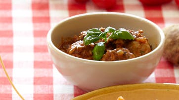Hak løg og hvidløg fint. Bland alle ingredienserne til farsen og rør den smidig. Del farsen i 10-12 portioner og form dem til store kødboller. Vend kødbollerne i mel og brun dem 5-6 ad gangen på panden i olie. Tag dine kødboller af panden. Hak champignon og løg og svits det på panden i olie. Drys melet over. Bland bouillon og tomatpuré og hæld det på panden under omrøring. Tilsæt oliven og krydr med salt og peber. Læg dine kødboller ned i saucen og lad dem simre 12-15 min., til de er møre. Servér picolat - spanske kødboller med en blandet, salat og brød.
