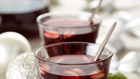 Halver vaniljestangen og skrab frøene ud. Skær limen i skiver. Kom solbærsaft, vand, vaniljestang og frø, lime og kardemomme i en gryde og lad det simre 10 min. under låg. Tilsæt vin og honning og varm op til lige inden kogepunktet. Tag gryden fra varmen og bland cognac i.