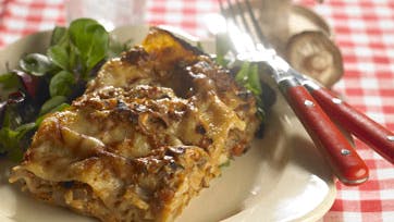 Tip: Lasagnen kan også laves med markchampignoner og 10 g tørrede udblødte rørhatte.